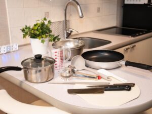 冷暖房/テレビ/ウォシュレット付きトイレ/バスタブ・シャワー/Wi-Fi/調理器具/食器&カトラリー/電子レンジ/トースター/炊飯器/冷蔵庫/IHコンロ/基本調味料/アイロン/加湿器